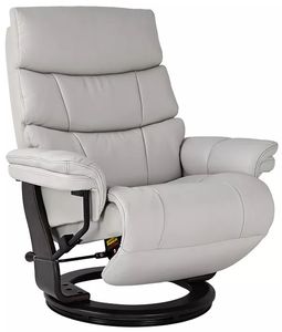 The BenchMaster Flip-Up Cheer light gray recliner features glove-soft leather upholstery, 360° swivel, a position-lock recline up to 158°, and a flip-up footrest handle. With a hidden adjustable headrest and solid build, it balances modern comfort and premium design.Read More
