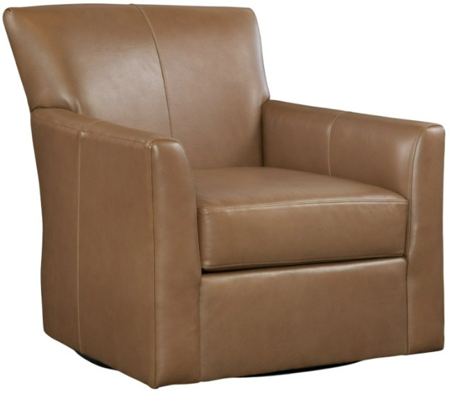 The Buckley leather swivel chair showcases a refined transitional style with its smooth swivel, rich leather upholstery, and tailored silhouette. Blending classic comfort with modern versatility, it’s the perfect accent for living spaces.Read More