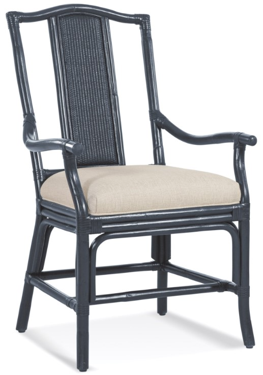 Want to set a coastal theme to your dining room? Look no further with this Drury Lane coastal dining arm chair. This chair comes with a wicker rattan frame with an upholstered seat for that extra comfort. Customize the finish and fabric to suit your style. Available in all standard finishes plus BC colors.Read More