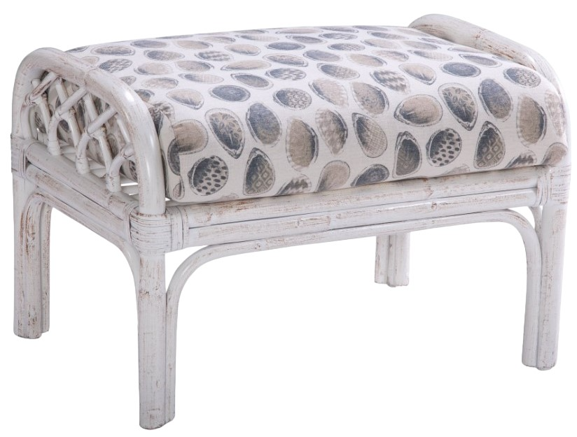 Accent your rattan chair with an exotically styled ottoman. This ottoman features tropical design features like gathered rattan block legs, rattan latticework, twine accents, and a plush seat cushion. Prop up your legs on this sturdy ottoman with resilient Comfort Plus cushion, and you'll be able to lounge and unwind like you're on vacation in the tropics.Read More