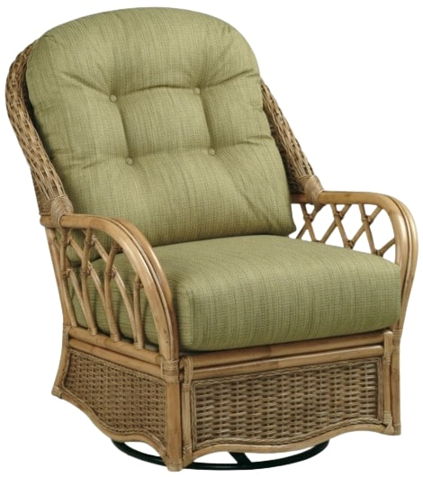 This wicker rattan styled chair features a bold mission look that is reminiscent of traditional styled cottages with antique home-made furniture. An elegant piece for living room collections, this swivel chair features a weaved rattan seat back and apron with plush upholstered cushions for a comfortable sitting experience.Read More