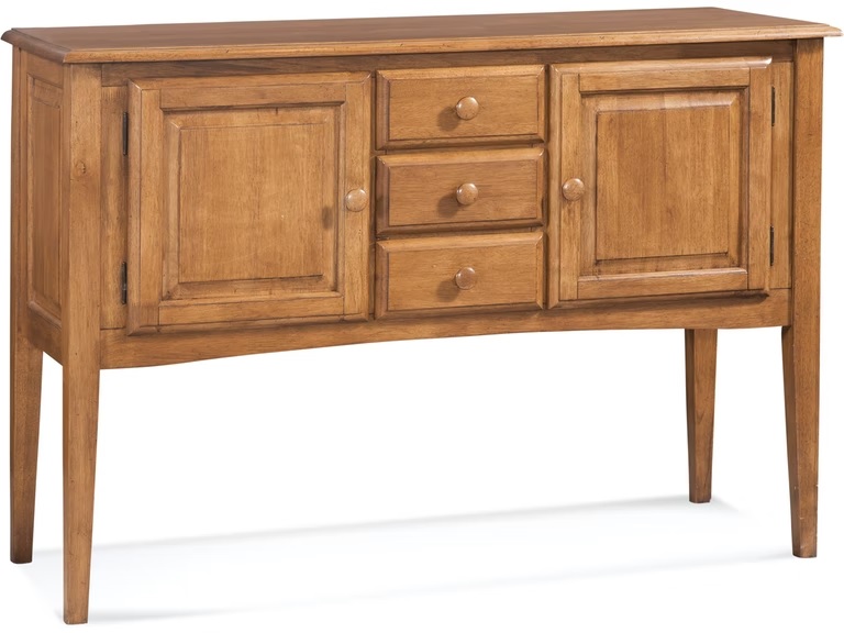 This transitional buffet has 2 doors and 3 drawers for your belongings. Set the tone of your home by choosing the finish best for you. Available in all standard finishes plus BC colors except honey and natural.Read More