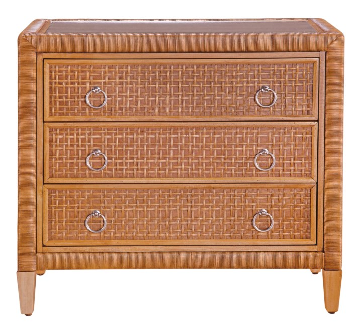 The Naples three-drawer Chest blends transitional and tropical style with natural rattan construction and a sleek glass top. Its three spacious drawers offer practical storage, while the textured finish and clean lines bring relaxed elegance to any space.Read More