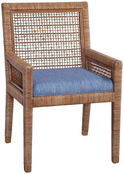 More than just a dining chair, this coastal upholstered wicker and rattan arm chair will soften your dining experience while maintaining a clean, friendly look. The unique lattice back design is also sure to impress your guests. Available in a variety of fabrics and finishes.Read More