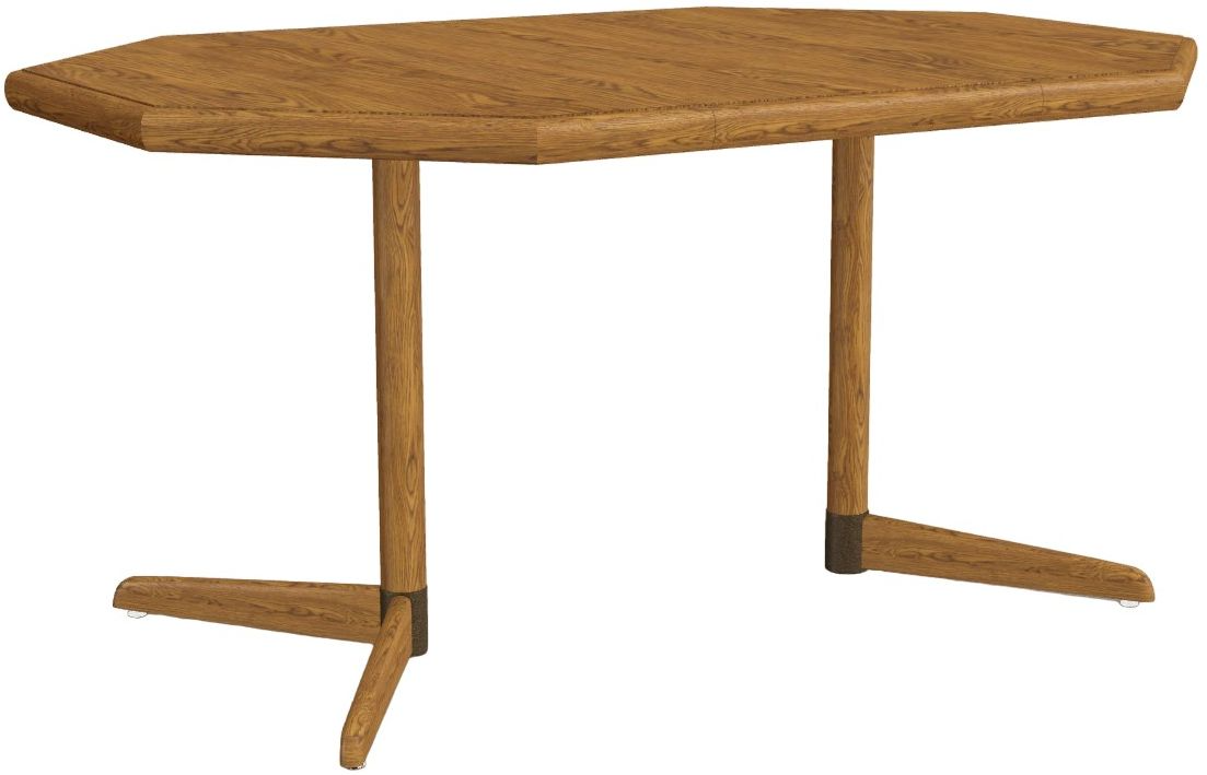 This table is constructed with a clip-corner extension HPL tabletop with solid wood edges and internal edge banding. Included is a singular 1-18" leaf all atop an over a wrapped metal table base with narrow wood caps.Read More