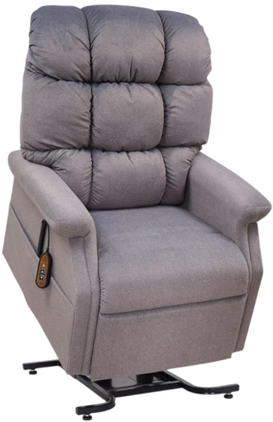 Enjoy the simplicity of comfort in the Cambridge by Golden. This traditional style power lift recliner is available in three sizes offering a unique fit for hours of comfort. The plush biscuit back and luxurious chaise pad provide supportive comfort for your body while the 1-Zone Comfort Zone Positioning System glides your body.Read More