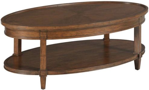 The Hammary® Longham warm auburn oval coffee table showcases a rich warm auburn finish with a classic oval design. Its sturdy construction and spacious surface provide both elegance and practicality, making it a perfect centerpiece for cozy, inviting living spaces.Read More