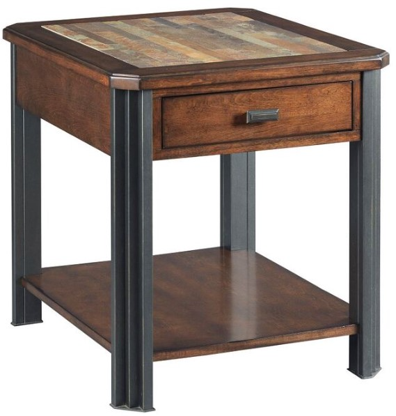 This end table is designed with rustic, industrial and contemporary element making it very popular in todays homes. It is constructed of birch veneers with a slate top and metal legs. It comes equipped with one drawer and one shelf.Read More