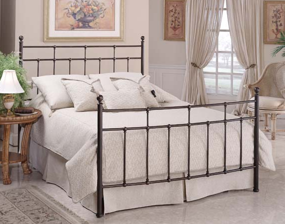 A traditionally styled bed features elegant ball finals and dainty castings. The footboard has a gentle bow shape from post to post. Antique bronze finish has a soft brownish bronze base, washed with a deep brown top coat, then padded to reveal the base coat and a hint of verdigris.Read More