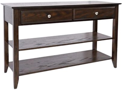 Sometimes, you just want a timeless look. Enter our Classics collection. Providing elegant, subtle looks with rich finishes with outstanding functionality. This sofa table features a butterfly matched veneer with straight-edge banding on the table top, an espresso finish, two drawers, and two shelves for open storage or display.Read More