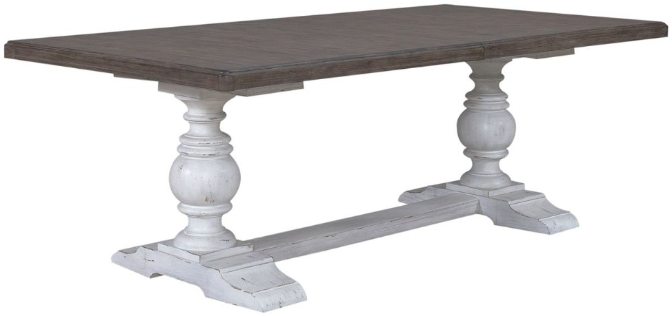 Designed to entice a sense of calm and tranquility into interior spaces, the River Place trestle table strikes the perfect balance of life on the coast and a comfy home tucked away in the hills. Crafted of pine solids and veneers, this table features a heavily distressed riverstone white and tobacco finish.Read More