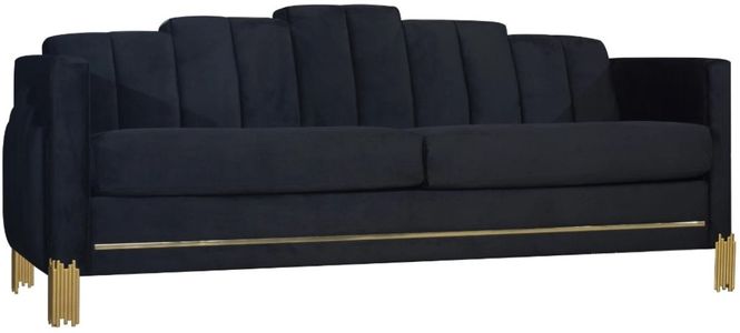 Introducing the Empire sofa, a durable and stylish addition to your living space. Crafted with an eco-friendly manufactured wood frame, this 3-seater couch ensures lasting strength and durability. Upholstered in luxurious 100% midnight black polyester velvet fabric, it adds a touch of sophistication to any room.Read More