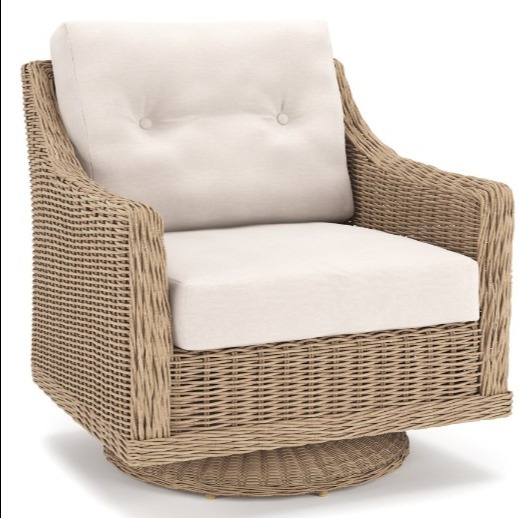 Swivel Rocking Chair With Cushions not only rocks but it also swivels. The beige-colored outdoor wicker is made from high-density polyethylene that partnered with cushions covered in fade- and mildew-resistant Sunbrella fabric which creates a wonderfully comfortable experience.Read More