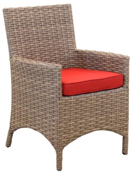 The sleek and stylish Universal Dining Arm Chair makes outdoor dining a luxury experience. The UV-protected wicker sports a woven design, creating a contemporary look with clean lines. This dining armchair includes a fade- and mildew-resistant Sunbrella® seat cushion.Read More