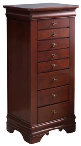 Graceful and timeless, this free-standing jewelry armoire in a Marquis Cherry finish blends traditional elegance with everyday function. Accented with classic Louis Philippe details and antique brass hardware shaped like shields of honor, it makes a stunning addition to any bedroom.Read More
