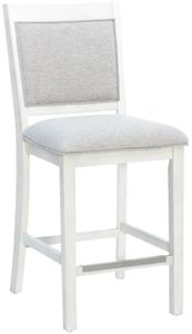 Bring timeless style and everyday comfort to your dining or kitchen space with this elegant counter stool. Crafted with a solid rubberwood frame in a white dry-brushed finish that highlights the natural woodgrain, it embodies modern farmhouse charm. The seat and backrest feature speckled gray linen-look upholstery for a plush, inviting feel.Read More