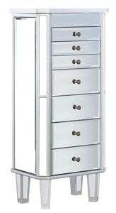 Add sparkle and organization to your space with this modern glam jewelry armoire. Finished in a bold silver and accented with mirrored panels, it’s as functional as it is eye-catching. The flip-top opens to reveal a vanity mirror, while multiple compartments keep your jewelry and accessories neatly stored.Read More