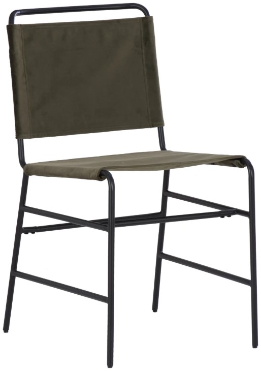 Sling seat and backrest made of white or forest green velvet for a soft texture and welcoming look