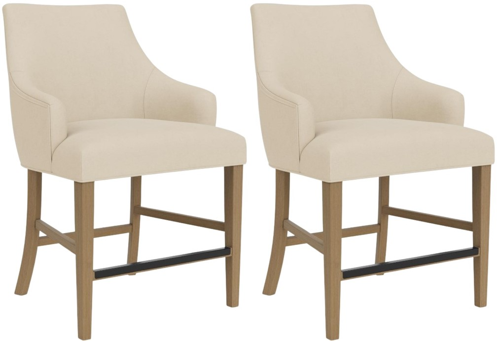 A versatile and stylish addition to any kitchen or bar area. These stools feature a contemporary design with clean lines and a sleek profile, making them perfect for a variety of decor styles. Upholstered in a neutral ivory-colored fabric, they offer a comfortable seating experience with cushioned seats and supportive backrests.Read More