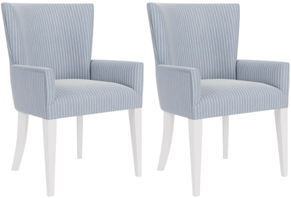 The Rosalie Upholstered Host Chair brings modern coastal charm to any dining space. Crafted from select hardwoods, it features a plush upholstered seat and curved back for extra comfort. The blue and white striped fabric, accented with welt trim, is outdoor-rated for durability, easy cleaning, and lasting beauty.Read More