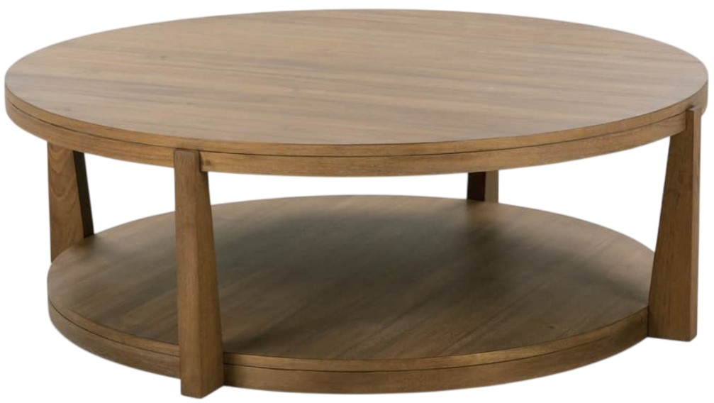 This 48" round cocktail table features Acacia veneers in a warm Saddle finish, offering natural character and an inviting presence in your living space. Its smooth silhouette blends easily with various styles, while adjustable floor glides provide stable placement, creating a functional and stylish centerpiece for everyday use.Read More