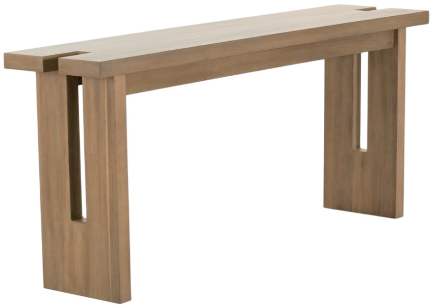 Rowe® Theory Fawn Console Table features flat cut Acacia veneer and rubberwood solids in a warm Fawn finish. Its streamlined silhouette provides an elegant surface for displays, while the open design keeps spaces feeling light. Adjustable glides ensure stability, making it a functional and stylish addition to entryways or living areas.Read More