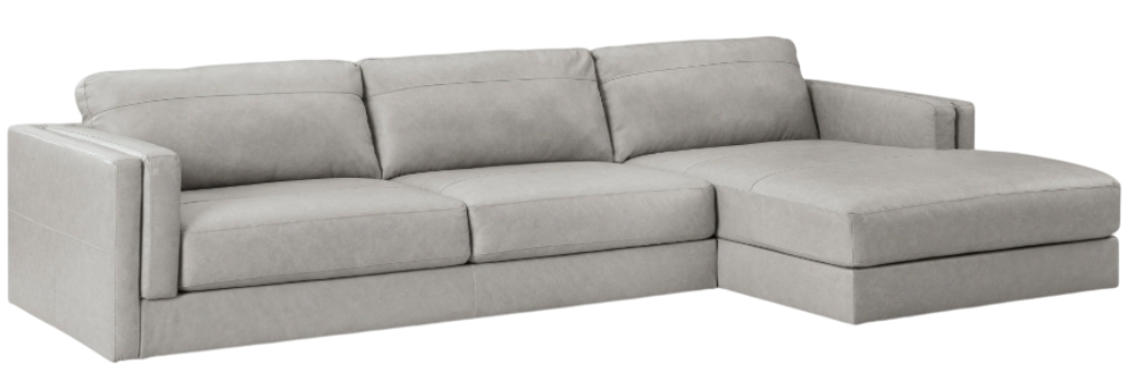 Keen on crisp, contemporary design? Adore the pleasure of leather? Look no further. This sectional with chaise satisfies on every level. Richly textured and decadently supple, the plush cushions are wrapped with expertly matched leather and faux leather upholstery in an on-trend neutral tone.Read More