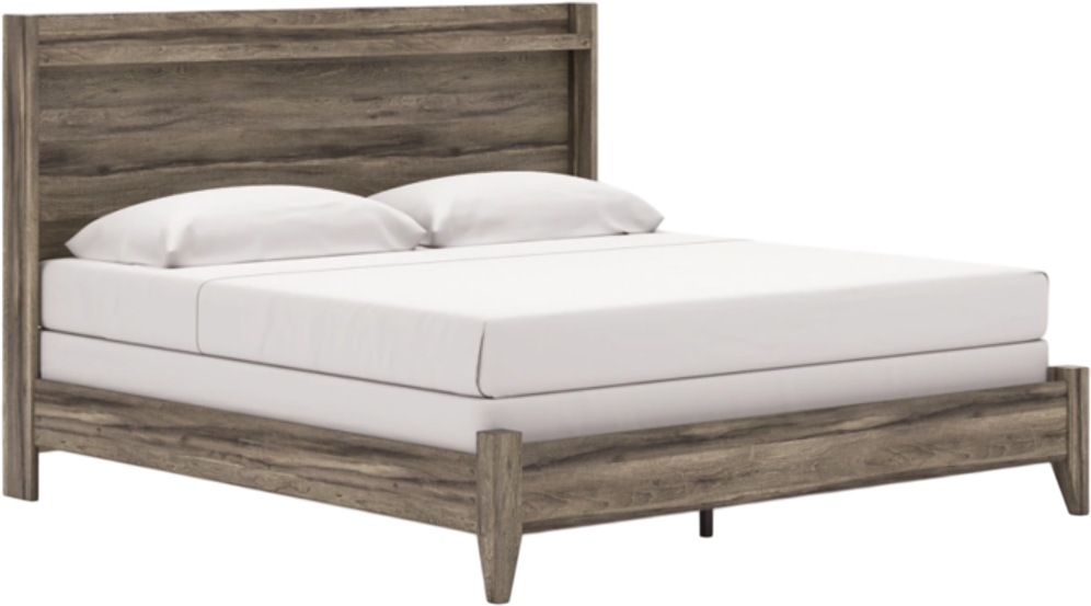 Rest in the casually cool style of this king panel bed. A weathered brown finish and chill LED lighting create an easygoing vibe, setting the scene in your restful retreat. The bed's clean-lined design provides a fuss-free look.Read More