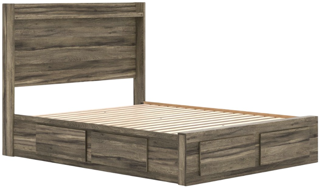 Rest in the casually cool style of this queen panel storage bed. A weathered brown finish and chill LED lighting create an easygoing vibe, setting the scene in your restful retreat. Spacious drawers underneath provide plenty of storage. The bed's clean-lined design provides a fuss-free look.Read More
