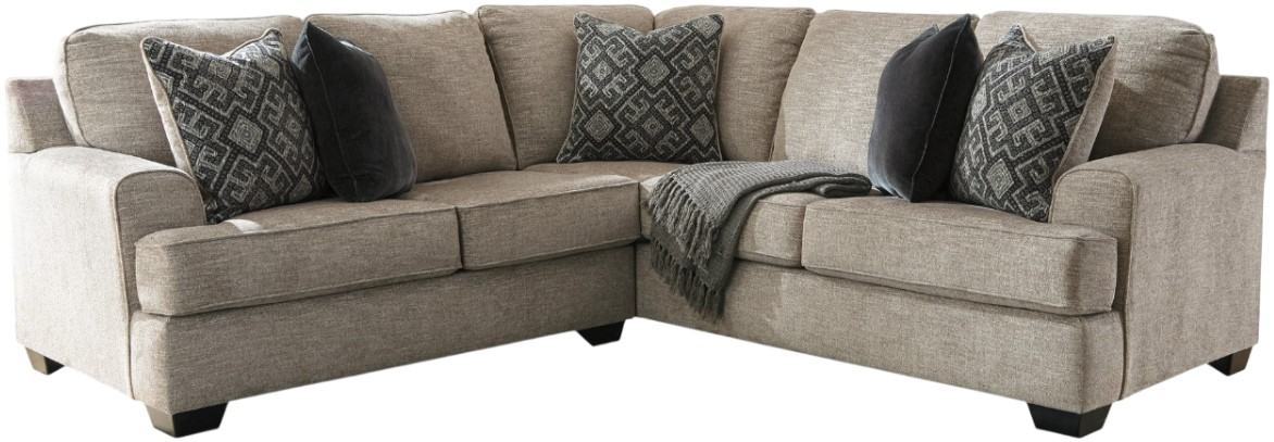 Whether your vision is clean and contemporary or cozy modern farmhouse, this sectional in a stone-tone neutral upholstery has the corner on style. Merging ultimate comfort with striking good looks, this chic sectional includes five coordinating accent pillows for that much more feel-good allure.Read More