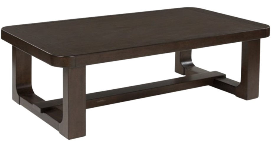 If casual contemporary style is your thing, then you'll love this coffee table. Its thick solid wood edge, softly rounded corners and dark wood-tone finish lend a soothing sensibility. Sleek and stylish, this piece is a fresh take on cool for the modern home.Read More