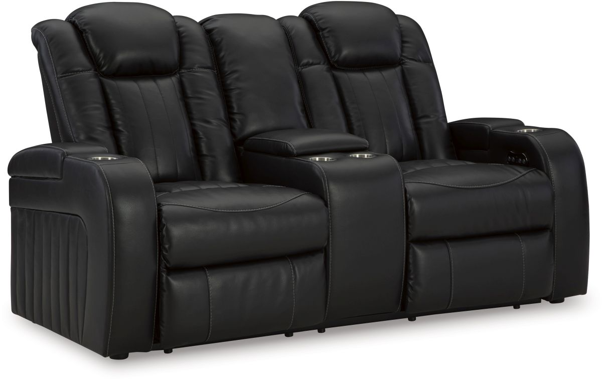 Experience ultimate comfort and sophistication with the Signature Design by Ashley® Caveman Den Midnight Power Reclining Loveseat. Draped in sumptuous midnight-hued upholstery, it features smooth power reclining, a center console with storage, and plush armrests—perfectly blending modern convenience with timeless luxury for your elevated lounging indulgence.Read More