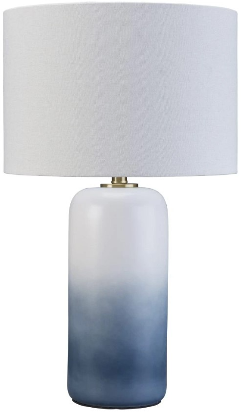 A dramatic ombré design defines this table lamp. Crafted of ceramic, it features broad, saturated bands of color that gradually fade to white toward the top. A natural fabric shade extends the tonal gradation and provides a tailored finishing touch.Read More