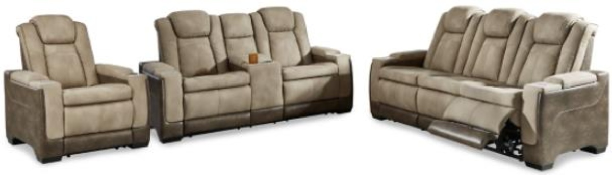 Includes power reclining sofa with adjustable headrest, power reclining loveseat and power recliner with adjustable headrest