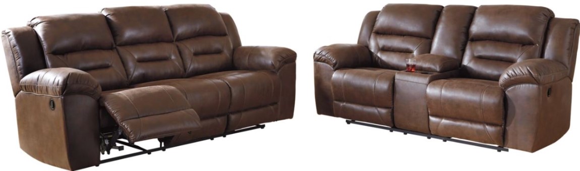 Includes reclining sofa and reclining loveseat with console